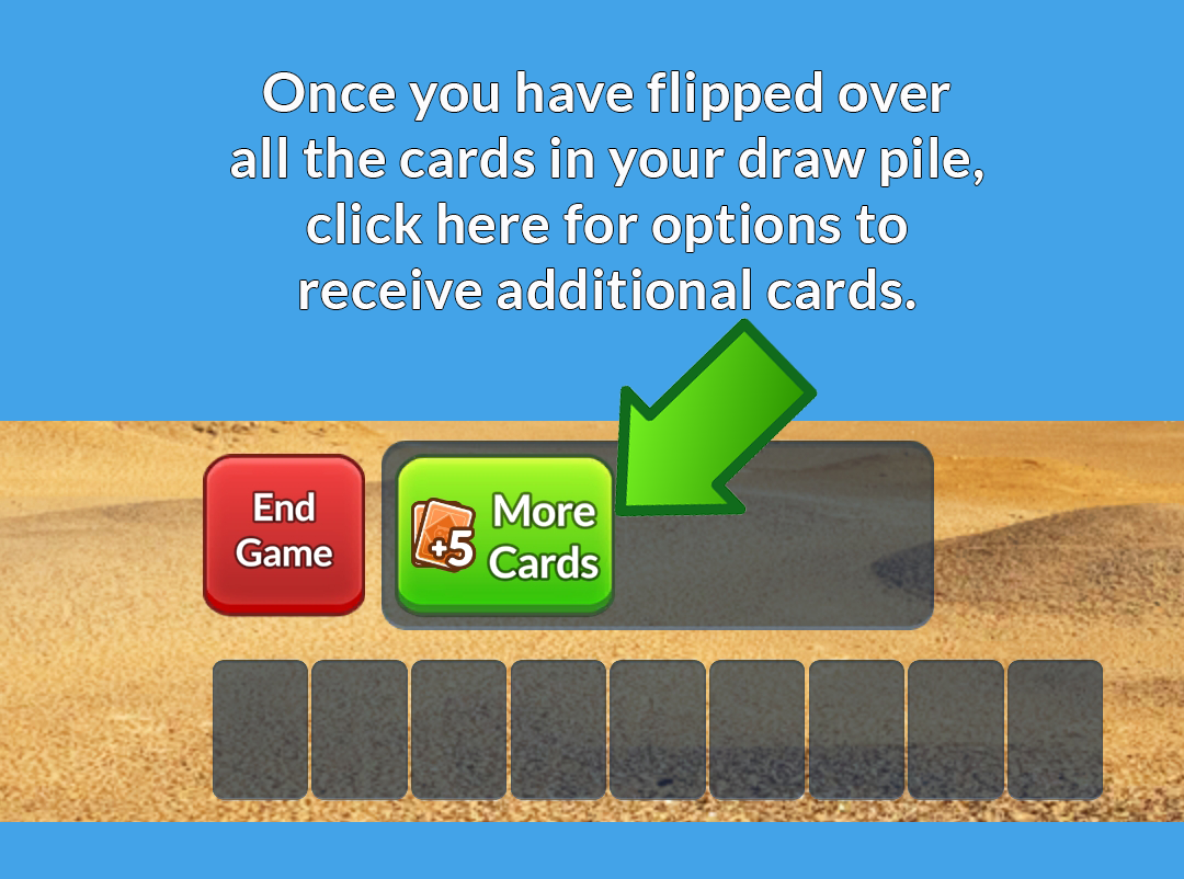 If you can't make a word from the cards that are currently on the board, you can use the face-up draw pile card, or tap on the draw pile to see additional cards. However, use the draw pile sparingly... you'll get a score bonus at the end of the level for any unused draw pile cards.