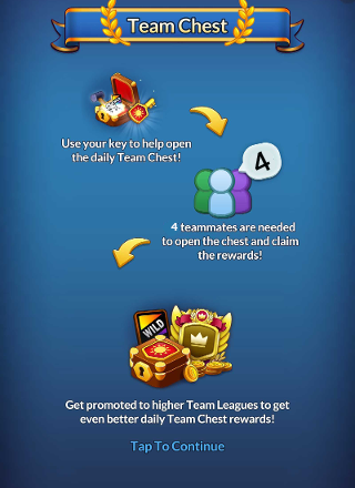 Teams allow players to band together to earn special rewards, socialize, compete in weekly Team League Tournaments, and win access to special In-Game Perks! They open up after Level 100, which allows players to get a good sense of how the game works before joining one.