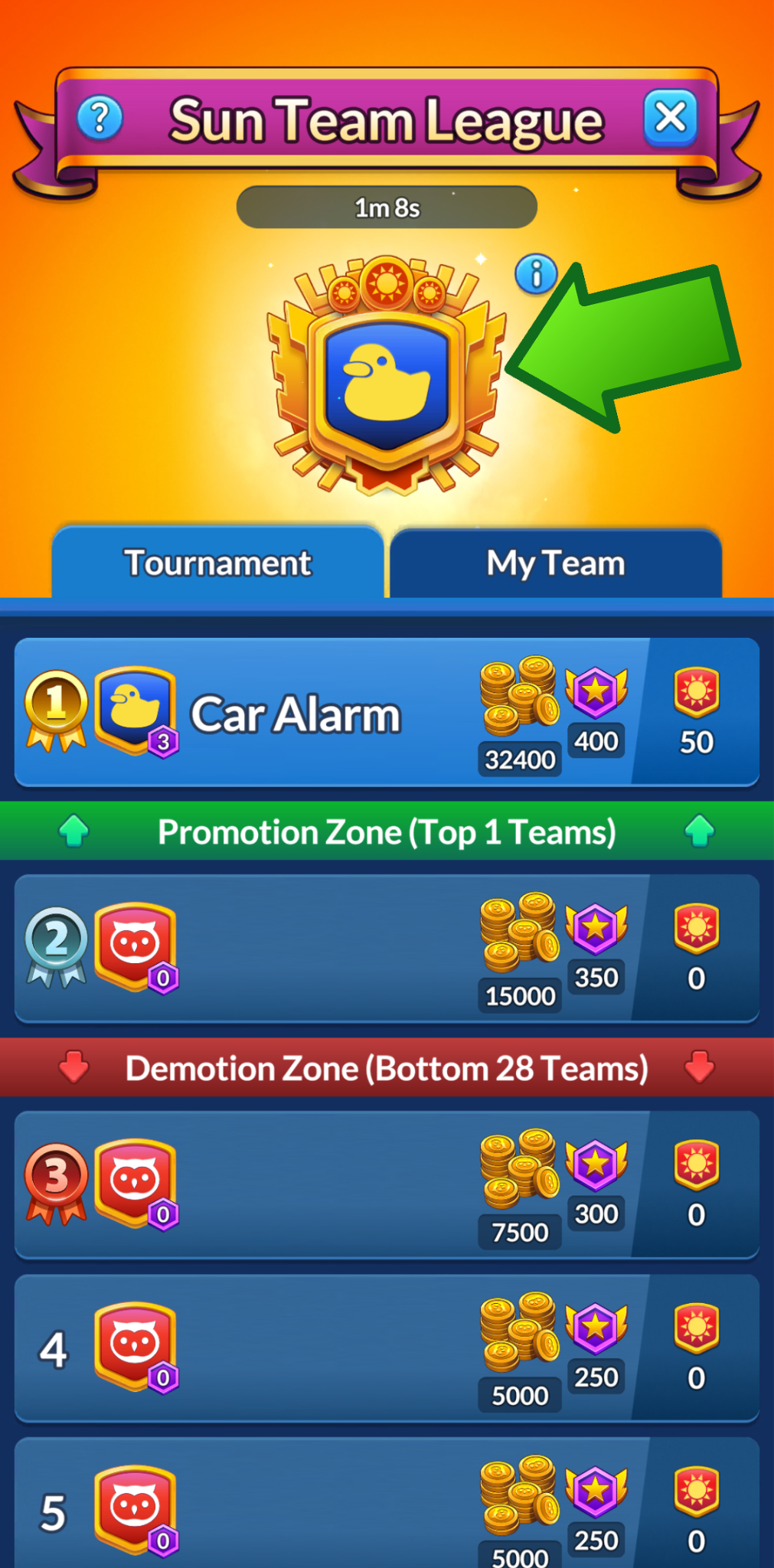 Players on each team pool their Team Points each week to compete against other teams! Teams with the most points win big coin prizes for every participating member — plus Prestige, which helps level up the team. Prestige is a special Team League currency that allows your team to expand as you earn more of it.