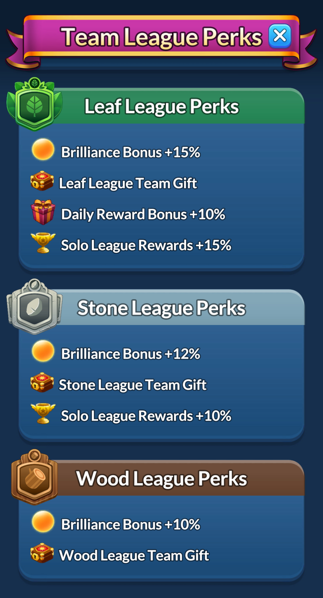 10% bonus brilliance from completing levels, achieving bonus goals, and completing Daily Challenges (also great for competing in Solo Leagues!).