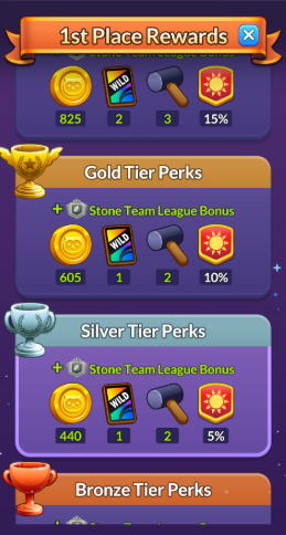 As teams climb into higher and higher Leagues, Team Tournament prizes and In-Game Benefits get better and better.