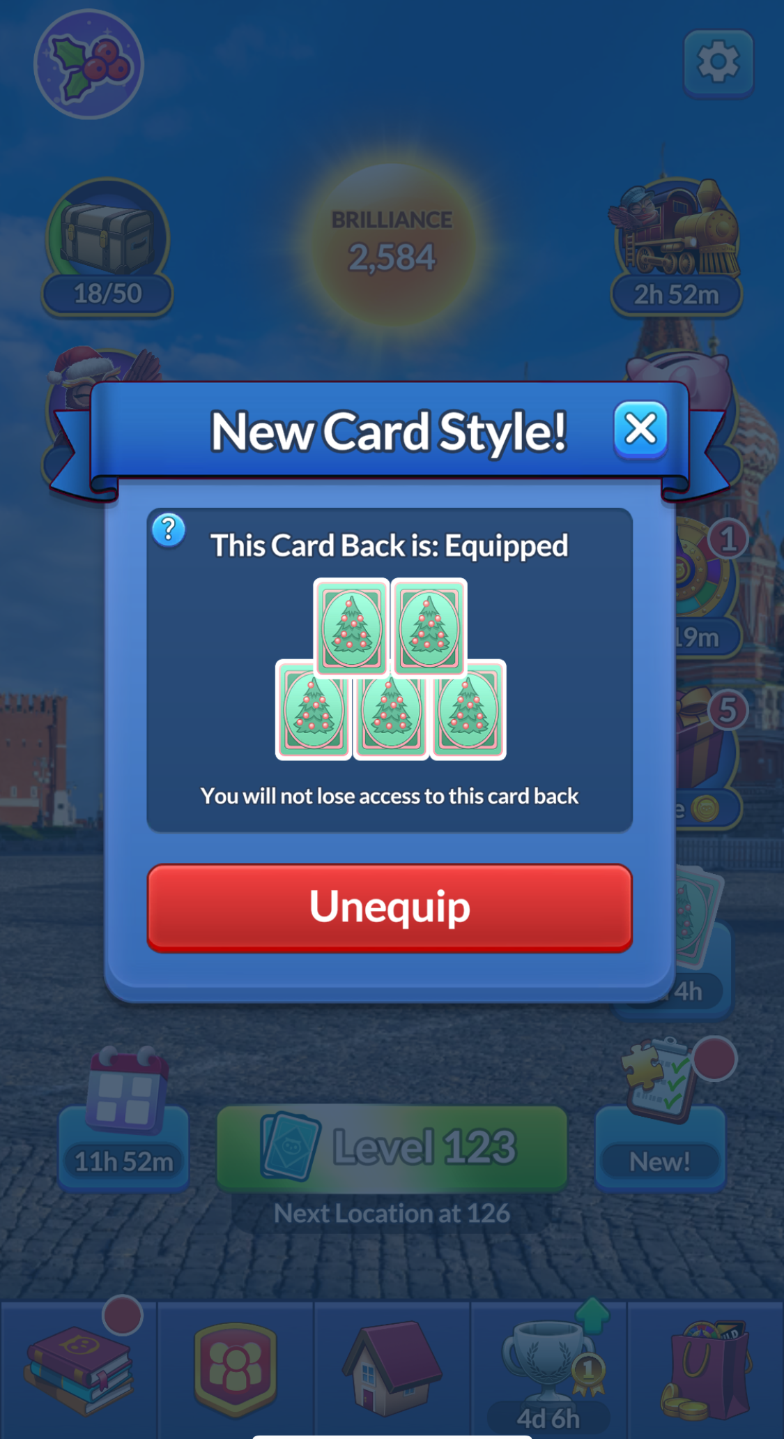 If a Card Back switches while a player is mid-level, the old Card Back will stay in place until the level is complete. The new Card Back will appear at the start of the next level.
