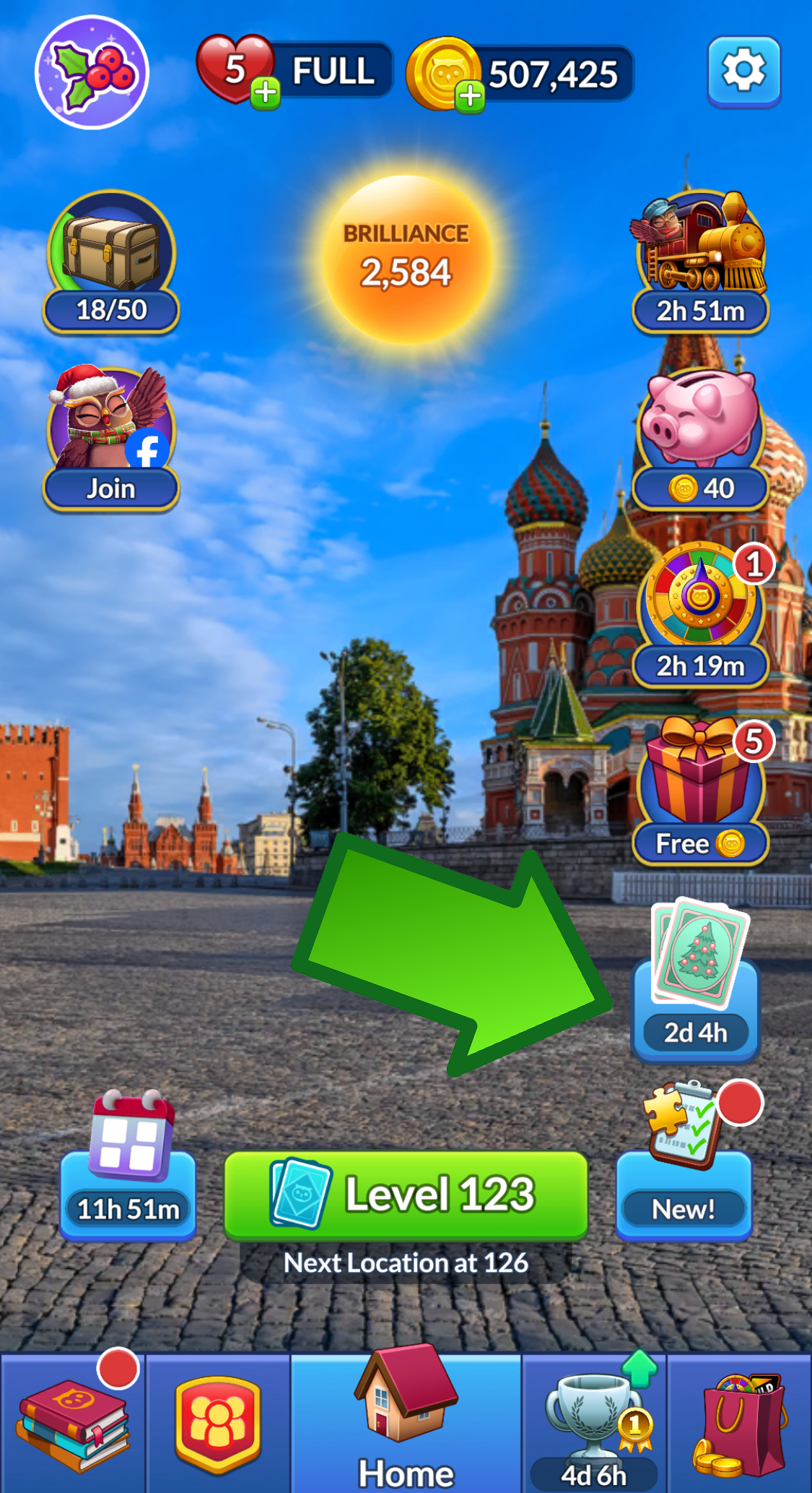Once you go through the process of getting a new Card Back, it automatically appears in the game. If you decide to change it back, you can go to the home page, and tap the Card Back Icon: