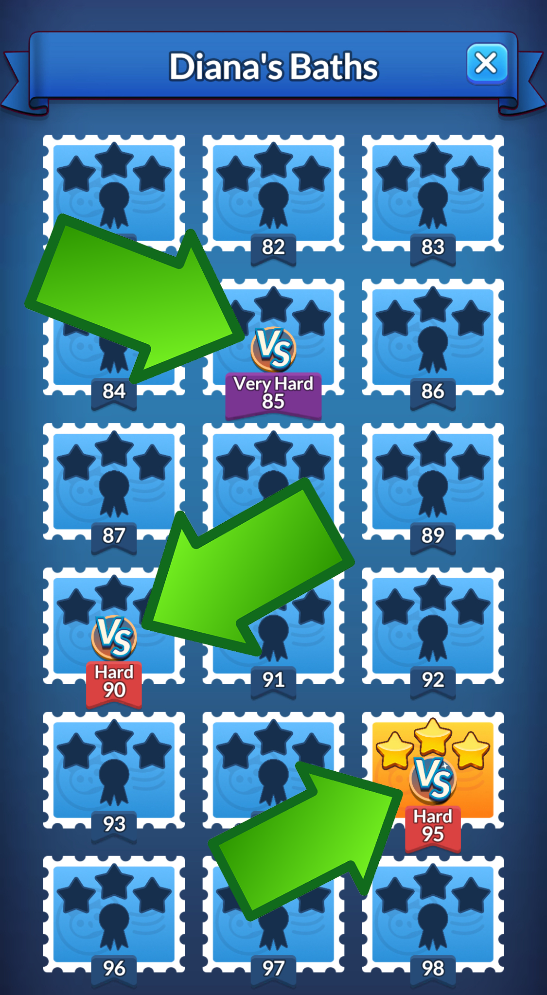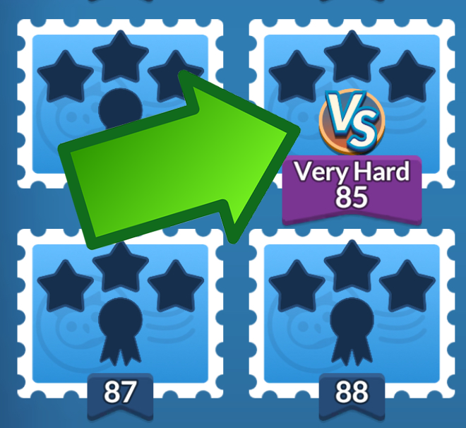 In the Level Map, Challenge Levels are indicated by the "VS." emblem:
